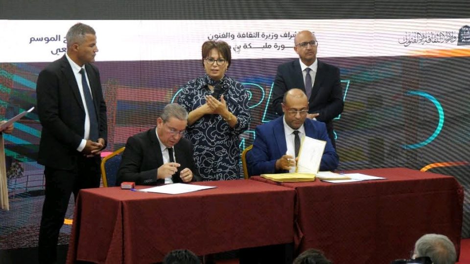 وأشرفت على الافتتاح وزيرة الثقافة والفنون مليكة بن دودة، بحضور والي ولاية تيبازة علي مولاي، والمدير العام للتلفزيون الجزائري محمد بغالي، إلى جانب عدد من الفنانين والمبدعين، من أبرزهم المخرج الكبير أحمد بجاوي. واستهلت الوزيرة الفعاليات بجولة في معرض تعريفي خاص بالمعهد الوطني العالي للسينما، عرّف بمختلف مرافقه البيداغوجية والفنية، تلاه معرض مشترك للمدارس والمعاهد العليا للفنون والتراث، أبرز تنوع التخصصات وثراء التكوين الفني في الجزائر. وفي كلمتها الافتتاحية أمام طلبة المعاهد الخمس، تحدثت الدكتورة بن دودة بلغةٍ فلسفية عن مفهوم الجمال في الفن، قائلة: “الفن والثقافة هما تاريخ طويل في البحث عن الجمال، ومحاولة مستمرة لتأسيس الفضاءات العمومية بالشيء الجميل. فالإنسان كائن ثقافي لأنه كائن جمالي، وكل قصص الحضارة هي قصص البحث عن الجمال.” كما أكدت أن انطلاقة هذا الموسم ليست مجرد حدث دراسي، بل دعوة للتأمل في مسؤولية طلبة الفنون والتراث في حفظ الهوية وتجديدها، والمساهمة في بناء وعيٍ جماليٍ ووطنيٍ أصيل. وخلال كلمتها، كشفت الوزيرة أن عدد الطلبة المسجلين عبر مختلف المؤسسات بلغ 735 طالبًا وطالبة في مرحلتي الليسانس والماستر، معتبرة ذلك مؤشرًا إيجابيًا على نجاح سياسة الدولة في ترسيخ التكوين الفني كمسار أكاديمي معتمد، يسهم في تكوين جيلٍ جديد من المبدعين في مجال الصناعات الثقافية والإبداعية. وعلى هامش الافتتاح، تم إمضاء ثلاث اتفاقيات تعاون لتعزيز التكوين والدعم البيداغوجي، منها: اتفاقية بين وزارة الثقافة والفنون ووزارة التعليم العالي والبحث العلمي للتكفل بالخدمات الجامعية، اتفاقية تبادل خبرات بين المركز الوطني للسينما والمعهد الوطني العالي للسينما واتفاقية تعاون في مجال التدريب والتكوين بين المعهد الوطني العالي للسينما والمؤسسة العمومية للتلفزيون الجزائري. كما كرم عدد من الأساتذة المتحصلين على التأهيل الجامعي، إلى جانب الأساتذة المحالين على التقاعد، تقديرًا لعطائهم الأكاديمي والفني، ليُختتم الحفل بصورة جماعية تذكارية جمعت الوزيرة بالمكرّمين والطلبة. هذا وعبرت مليكة بن دودة عن فخرها بالمستوى الذي بلغته هذه المؤسسات، معتبرة إياها اليوم رافدًا أساسيا في بناء الاقتصاد الثقافي الوطني، ومحورًا في صناعة الجمال والمعرفة والهوية، مشيدةً بطموح الطلبة وإبداعهم المتجلي في مشاريعهم الفنية والبحثية. واختتمت الفعالية وسط أجواء احتفائية مفعمة بالفخر والأمل، جسدت روح الالتزام الجماعي بالنهوض بالثقافة والفنون في الجزائر، تأكيدًا على أن الفن طريق لصون الذاكرة وصناعة المستقبل.
