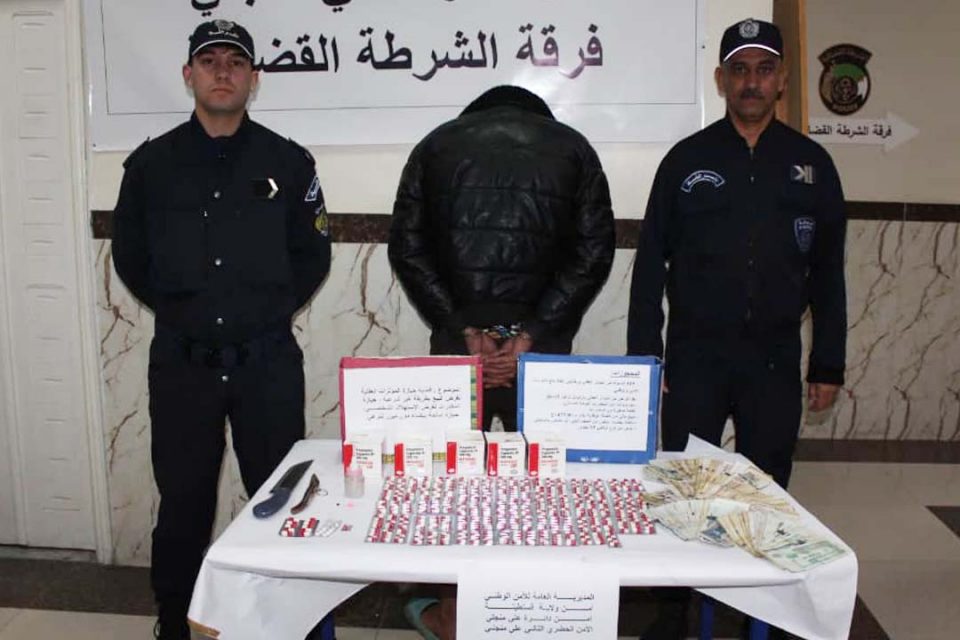 تمكنت قوات الشرطة بالأمن الحضري الثاني علي منجلي من توقيف شخص يبلغ من العمر 34 سنة مواصلة لجهود مصالح أمن ولاية قسنطينة في مكافحة الجريمة الحضرية خاصة المتعلقة بترويج المخدرات و المؤثرات العقلية مع حجز كمية من المخدرات والمؤثرات العقلية ، وكذا أسلحة بيضاء محظورة، وتعود حيثيات القضية لاستغلال معلومات مؤكدة وردت لعناصر الشرطة بذات المصلحة، مفادها قيام شخص بترويج الممنوعات على مستوى المدينة الجديدة علي منجلي بمحاذاة مقر إقامته ، أين يقوم بإخفائها وتخزينها داخل مسكنه العائلي، على إثر ذلك تم تكثيف الأبحاث والتحريات التي كللت بتحديد هوية المشتبه فيه، بالتنسيق مع النيابة المحلية تم تفتيش مسكن هذا الأخير تم ضبط 525 كبسولة من المؤثرات العقلية، كمية من المخدرات و المخدرات الصلبة (اكستازي)، إضافة إلى أسلحة بيضاء محظورة متمثلة في سكين من الحجم الكبير ، سكين من الحجم الصغير، ومبلغ مالي من عائدات البيع والترويج ، المشتبه فيه تم توقيفه وتحويله لمقر الأمن الحضري لاستكمال الإجراءات القانونية اللازمة، وبعد الانتهاء من مجريات التحقيق تم إنجاز ملف إجراءات جزائية في حق المشتبه فيه قدم بموجبه أمام النيابة المحلية عن قضيتي حيازة المؤثرات العقلية لغرض البيع بطريقة غير شرعية، حيازة المخدرات والمخدرات الصلبة لغرض الإستهلاك الشخصي بطريقة غير شرعية، حيازة اسلحة بيضاء محظورة دون مبرر شرعي.